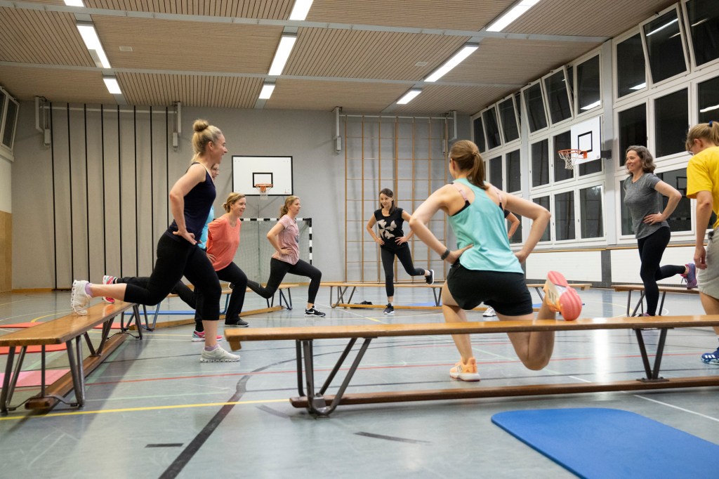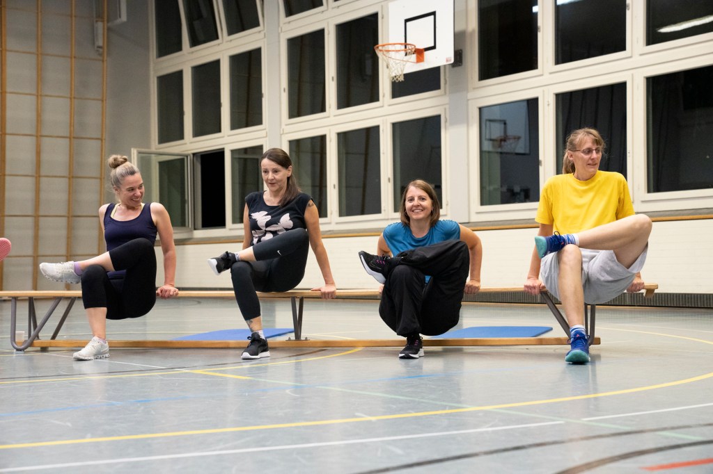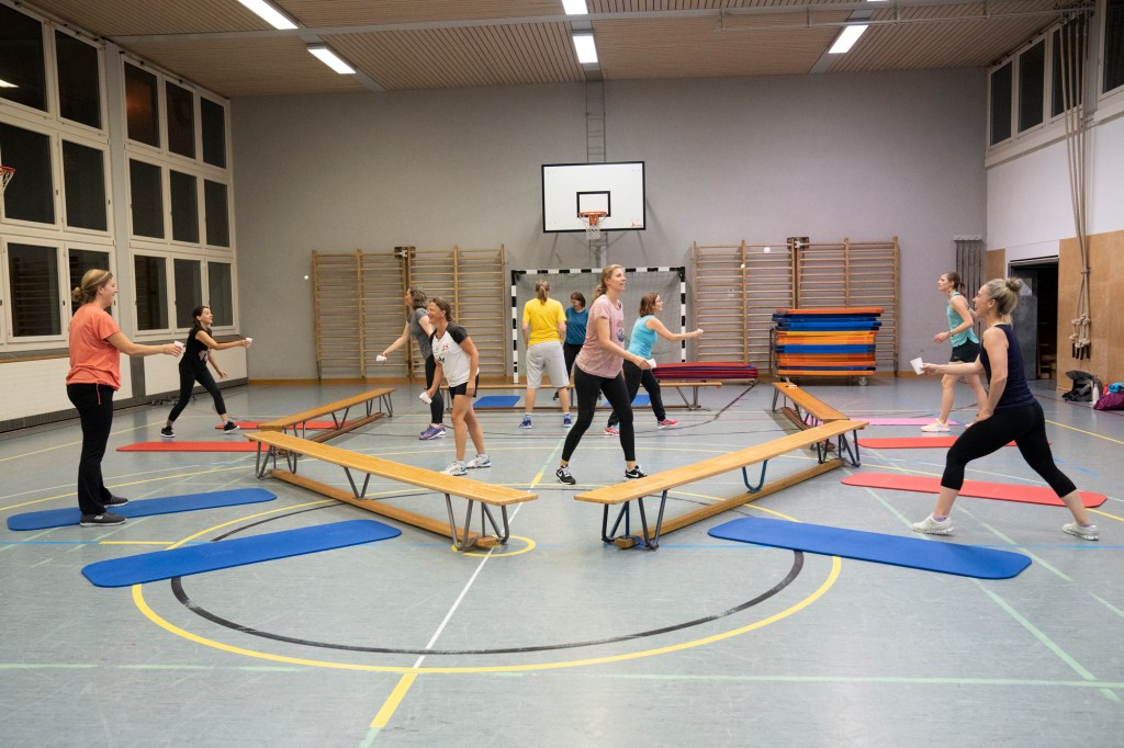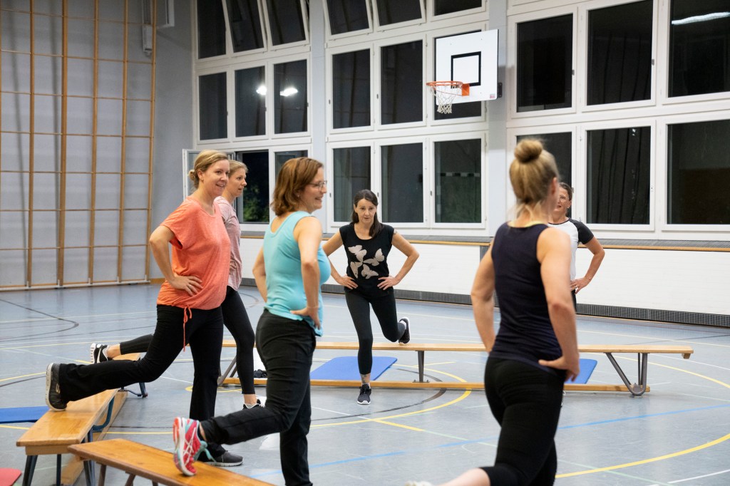 Frauen im Alter von ca. 25-50 Jahren fühlen sich wohl in der Fit@Hubelmatt Riege jeweils Montagabends.